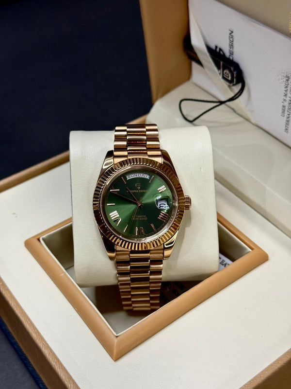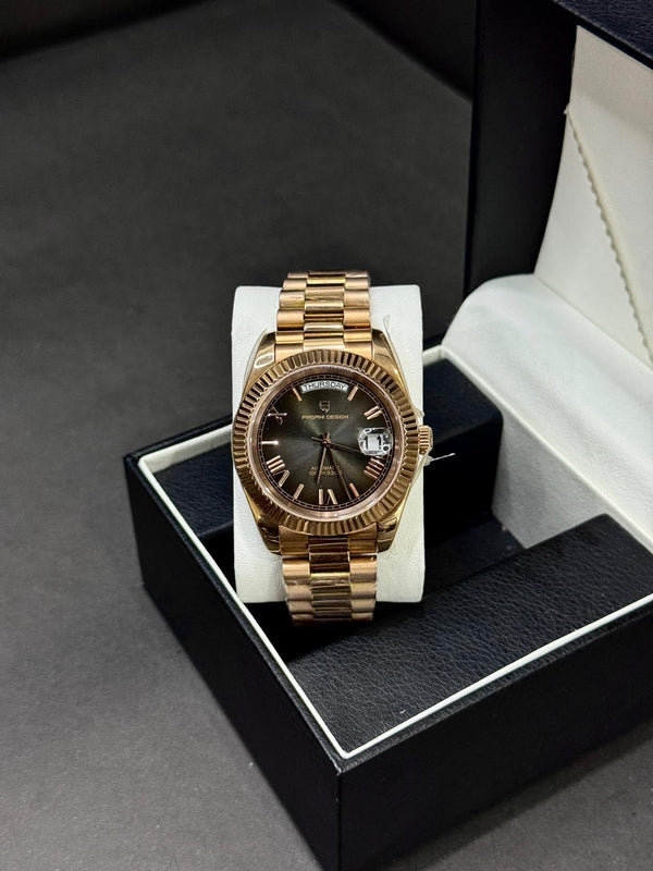 PAGANI DESIGN DAYDATE | SEIKO JAPAN ST16 AUTOMATIC | PD-1752 | ROSE GOLD WITH ICE BLUE